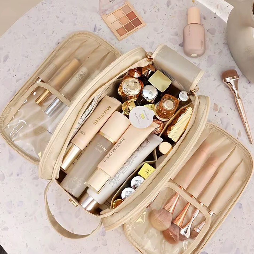 The Travel Toiletry Organizer is made from premium waterproof material, it not only feels soft to the touch, it offers comprehensive protection and organization for your cosmetics.